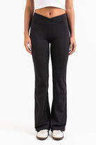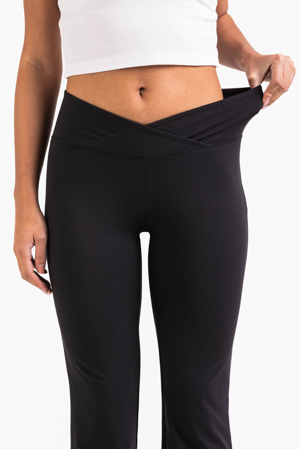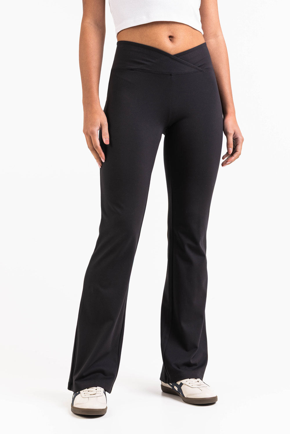 Dessa leggings med en smickrande V-formad midjeband har en trendig bootcut-passform med en sömlös ficklös design. En elastisk midja säkerställer flexibilitet, vilket gör dessa leggings perfekta för både aktiva och avslappnade dagar.