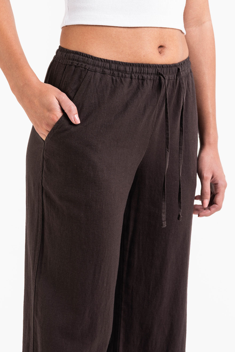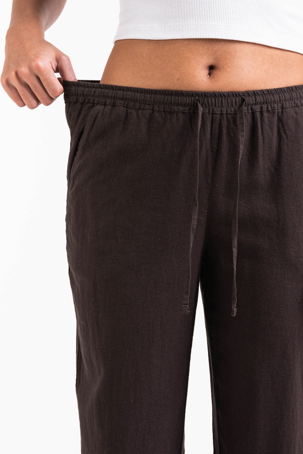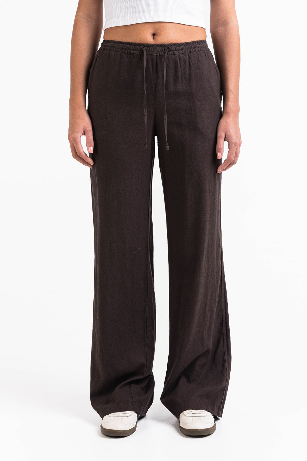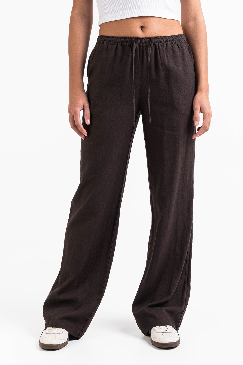 Dessa linnebyxor med medelhög midja har en avslappnad rak passform med sidofickor för funktionalitet. Den elastiska midjan, dragsko och vikbara designen ger en säker passform samtidigt som de håller sig lätta och luftiga.