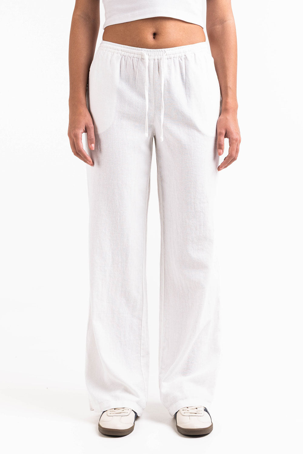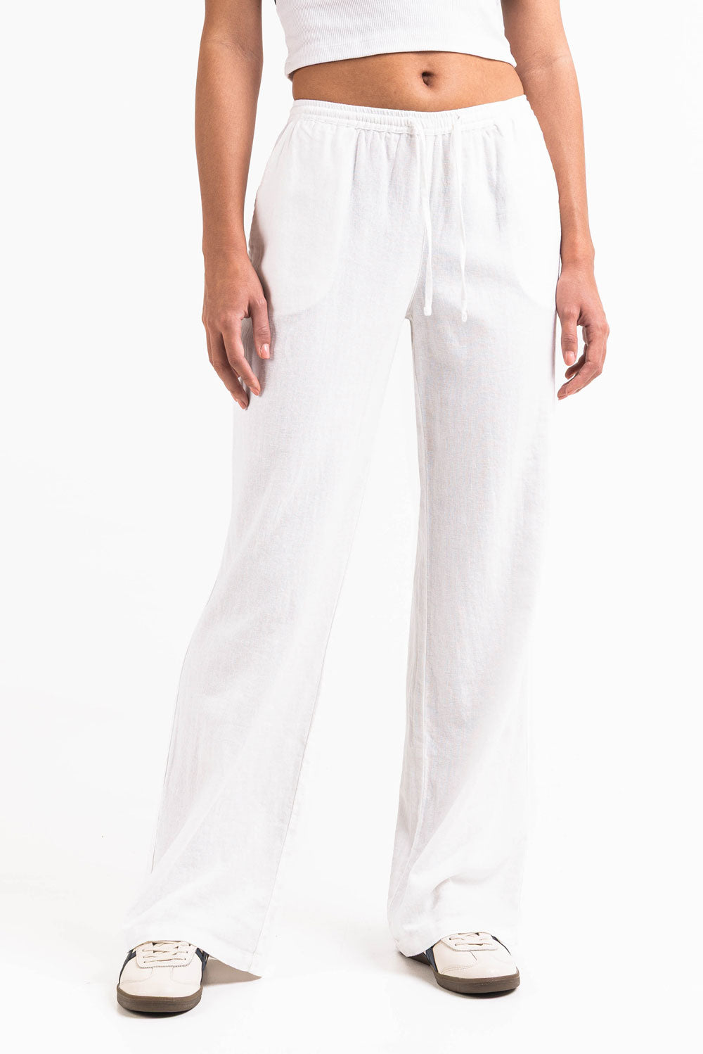 Dessa linnebyxor med medelhög midja har en avslappnad rak passform med sidofickor för funktionalitet. Den elastiska midjan, dragsko och vikbara designen ger en säker passform samtidigt som de håller sig lätta och luftiga.