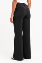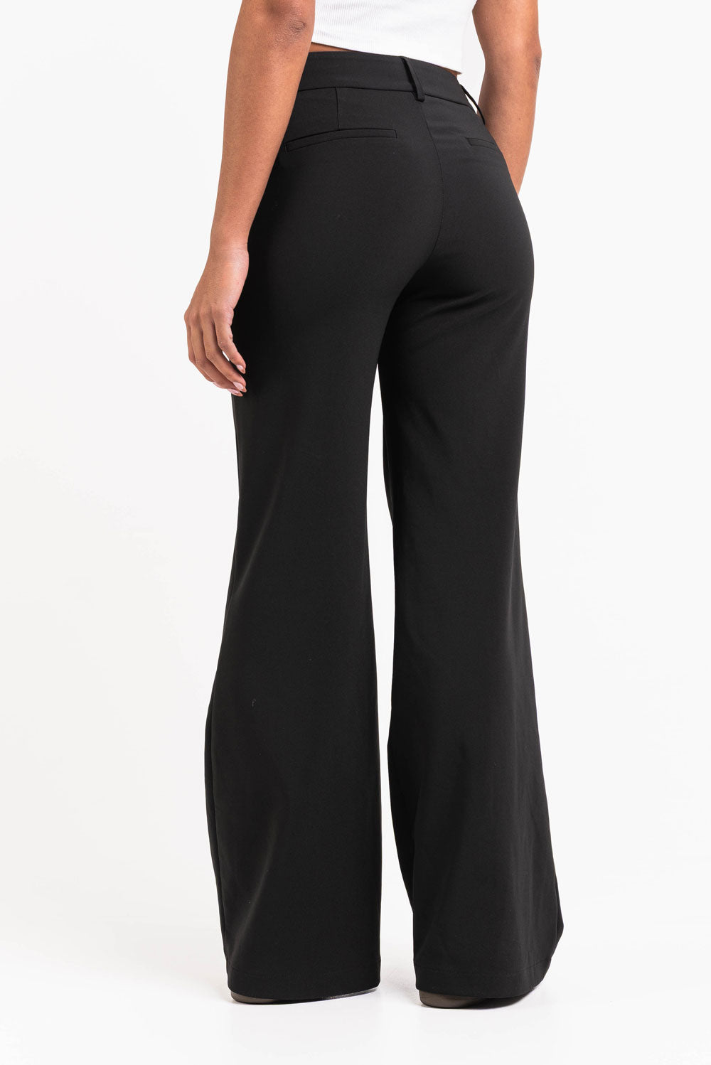 Kostymbyxor med medelhög midja och utsvängda ben. Tillverkade i ett stretchtyg som ger en bekväm passform hela dagen. Falska bakfickor och generösa bälteshällor för att hålla både smala och breda bälten. Byxorna stängs med dragkedja, hake och dold knapp.