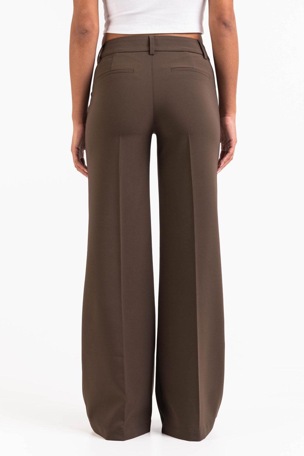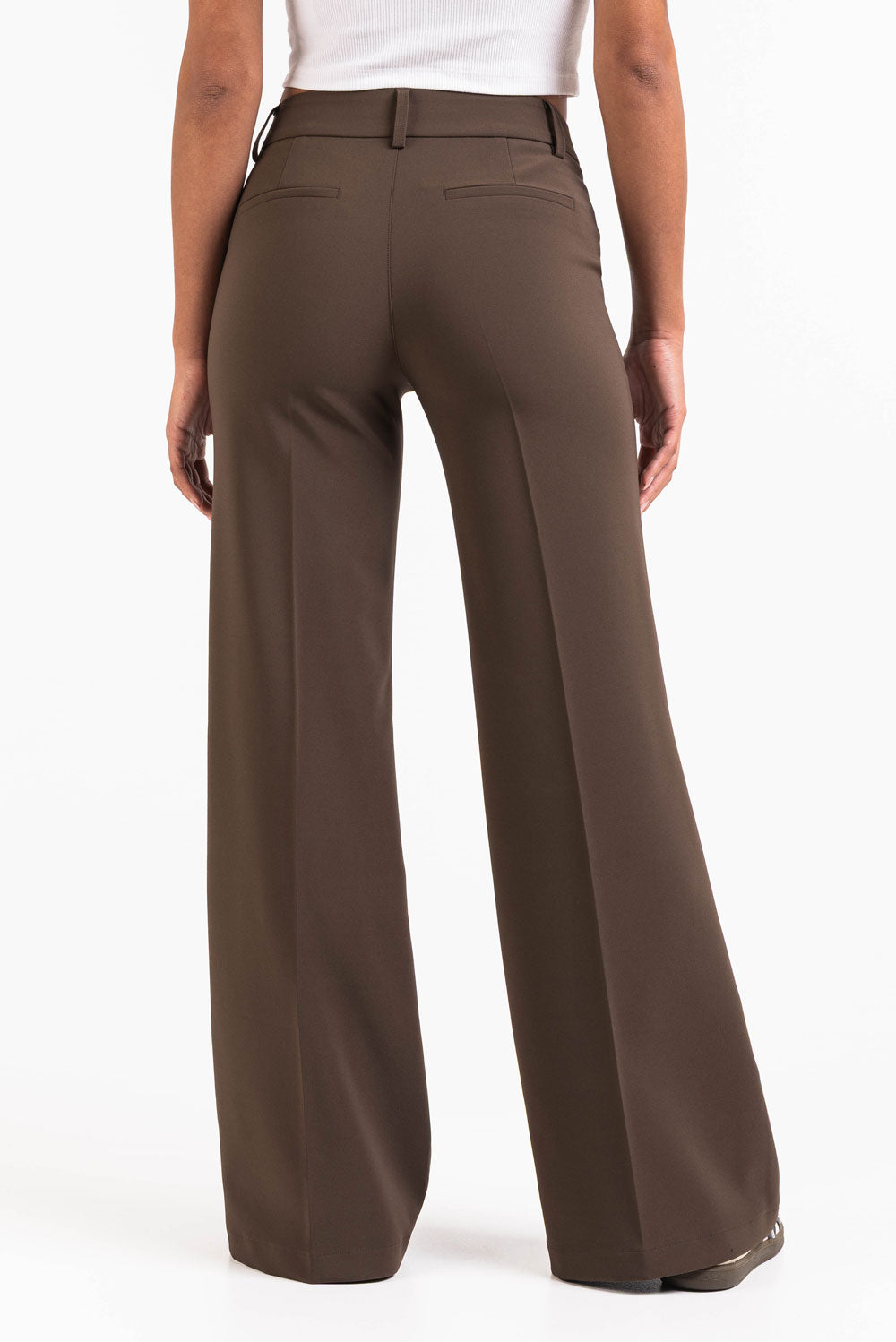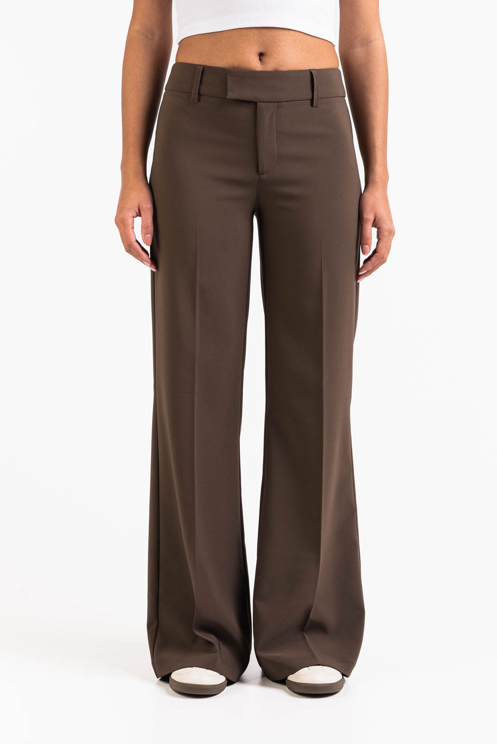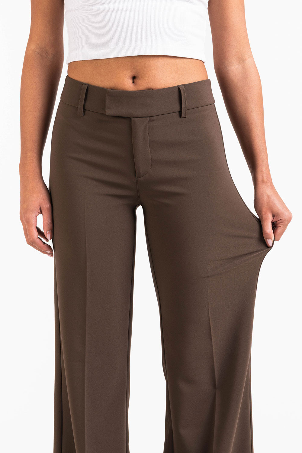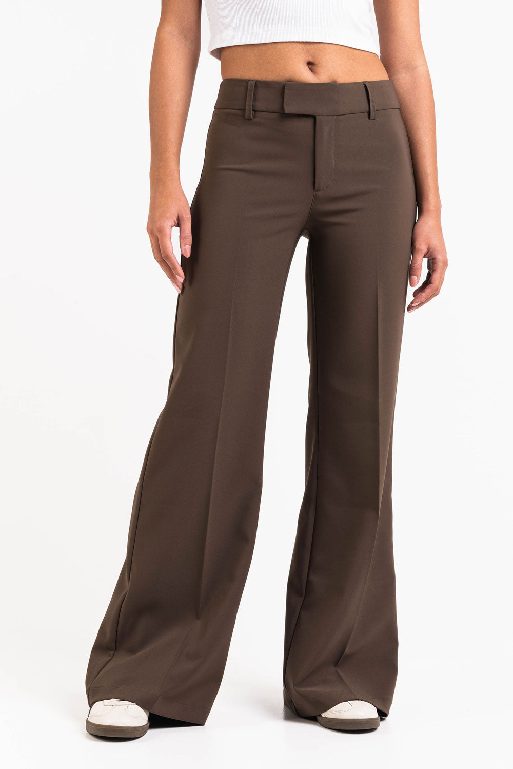 Kostymbyxor med medelhög midja och utsvängda ben. Tillverkade i ett stretchtyg som ger en bekväm passform hela dagen. Falska bakfickor och generösa bälteshällor för att hålla både smala och breda bälten. Byxorna stängs med dragkedja, hake och dold knapp.
