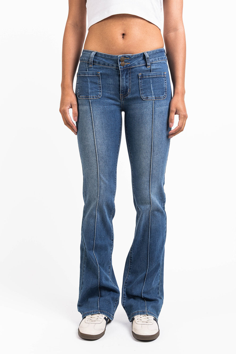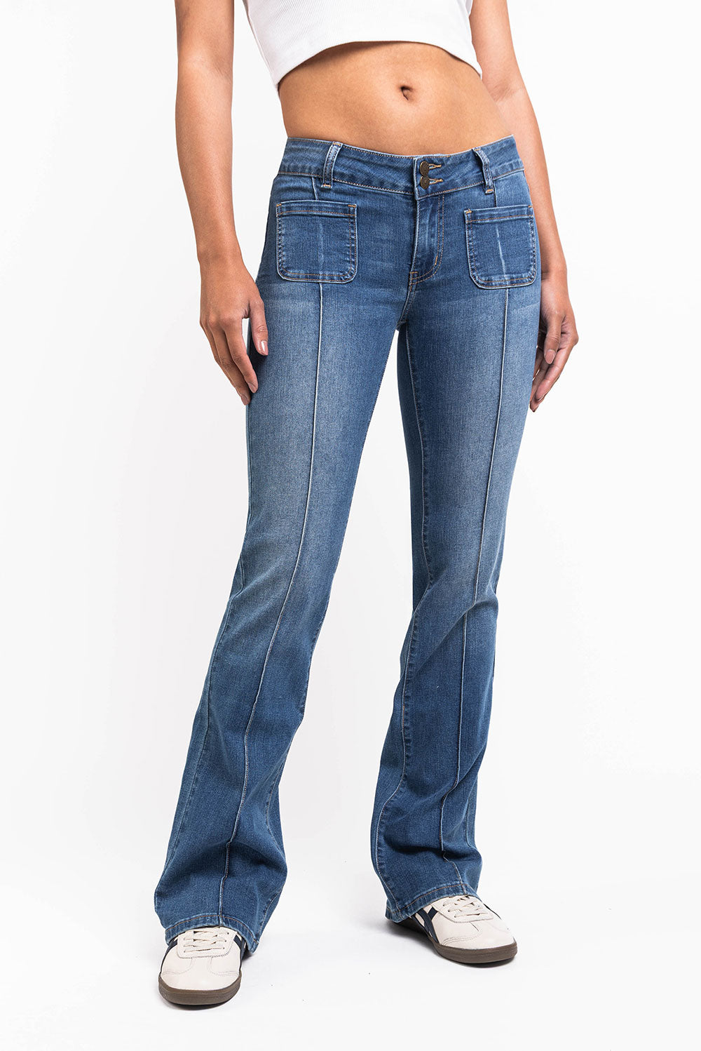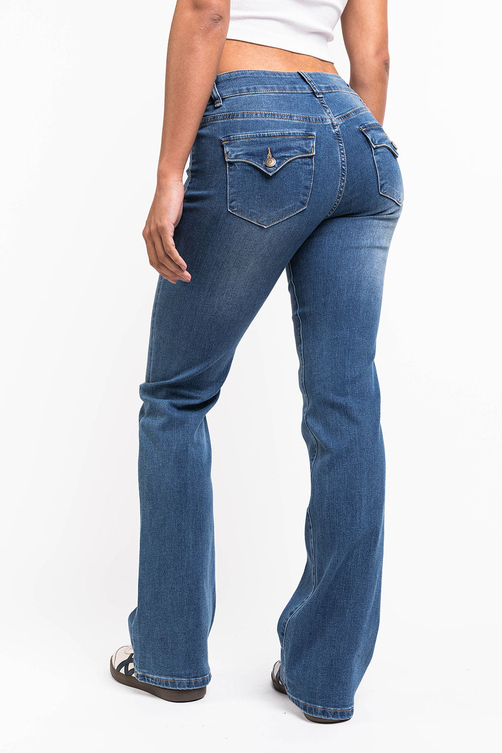 Dessa jeans med låg midja har en tidlös bootcut-passform med funktionella bak- och framfickor. Detaljer som pressveck, hällor och gylf med dragkedja ger struktur, vilket gör dessa jeans till ett praktiskt val för vardagsbruk.