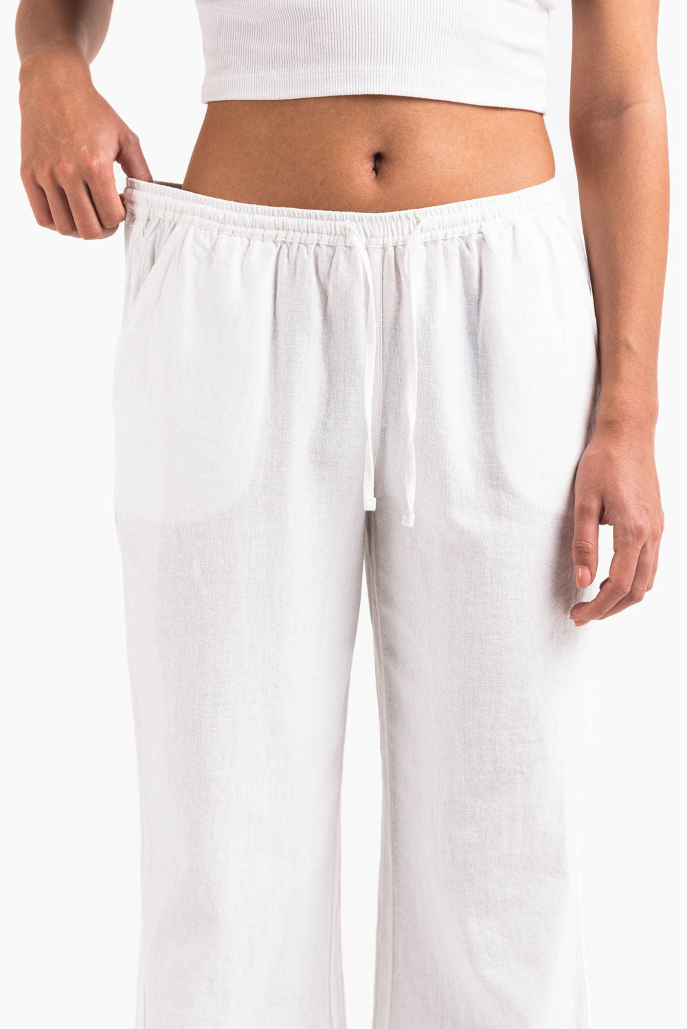 Dessa linnebyxor med medelhög midja har en avslappnad rak passform med sidofickor för funktionalitet. Den elastiska midjan, dragsko och vikbara designen ger en säker passform samtidigt som de håller sig lätta och luftiga.